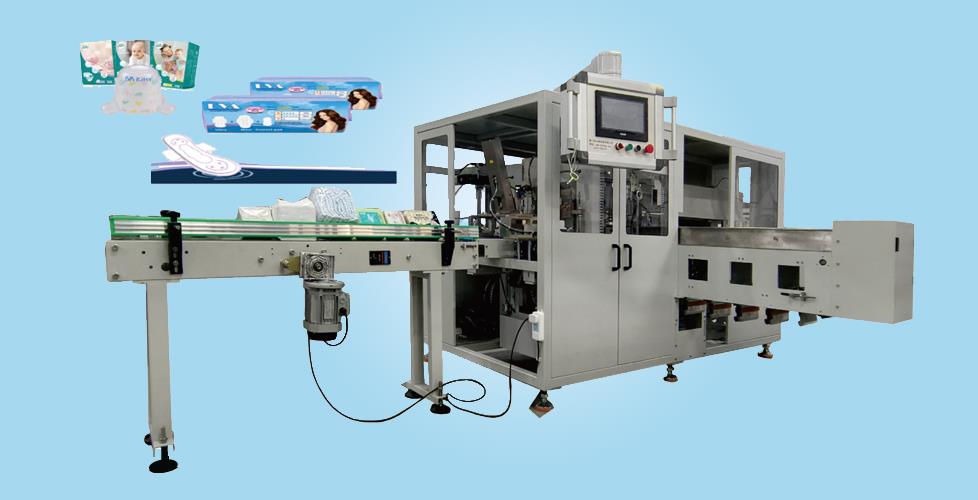 P28包裝機是主要用于衛生巾、嬰兒紙尿褲(小包)、嬰兒護理墊、棉柔巾等裝袋封口的全自動包裝機。